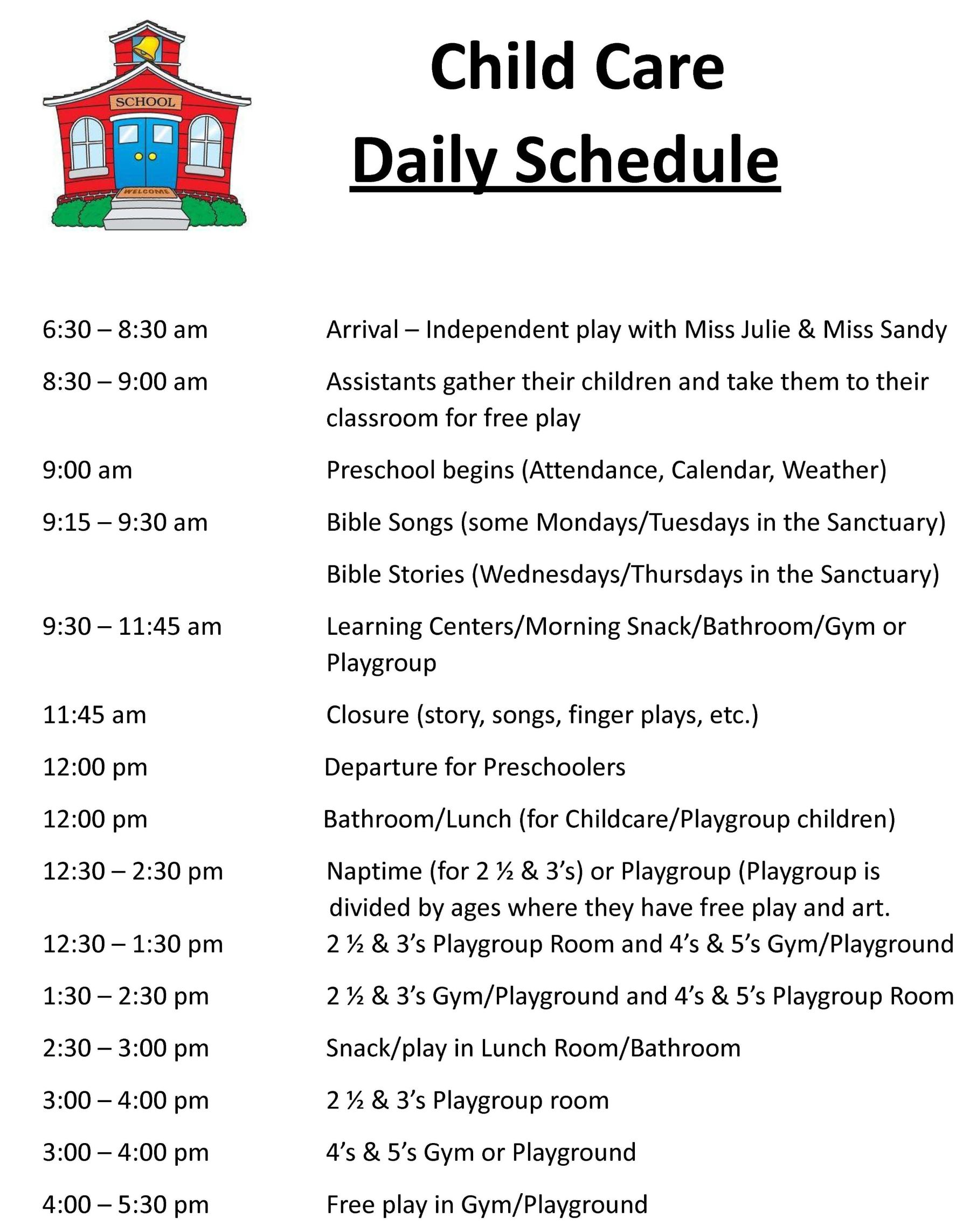 Activities in the Preschool vary day to day. The scheduling, pacing and rhythm of each activity is consistent with recognized principles of early childhood education. These principles recognize that each child develops at his or her own rate within the general guidelines of his/her age group. The curriculum is based on the interest of the child and the resources available to meet those interests. Children are encouraged to share their thoughts and feelings.